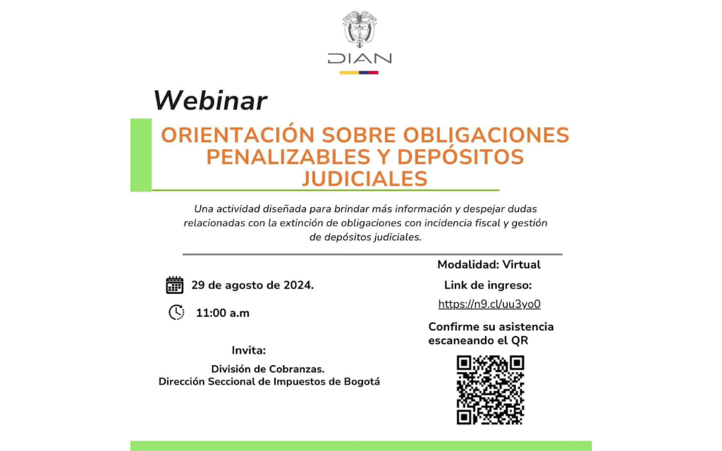 DIAN. Webinar Orientación sobre Obligaciones, Penalizaciones y Depósitos Judiciales