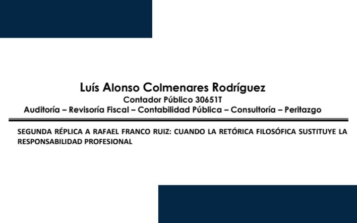 Este análisis constituye una respuesta crítica a la contrarréplica presentada por Rafael Franco Ruiz frente al proyecto de ley 345 de 2025. Tras la audiencia pública del 2 de diciembre en la Comisión Sexta de la Cámara de Representantes, Franco ha mantenido una posición que, aunque intelectualmente elaborada, continúa sin ofrecer propuestas constructivas y operacionalizables para la reforma de la contaduría pública en Colombia, limitándose a crítica teórica desconectada de la urgencia regulatoria que la profesión enfrenta, contexto que Franco reconoce pero cuya resolución deliberadamente elude mediante una narrativa que, aunque intelectualmente compleja, es institucionalmente improductiva.